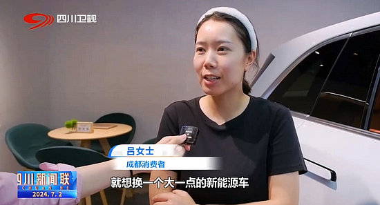 成都消費(fèi)者 呂女士:我們原來有個(gè)油車,就想換一個(gè)大一點(diǎn)的新能源車,了解到有這樣的一個(gè)政策,然后多1000塊錢置換補(bǔ)貼,所以今天就趕緊過來看。