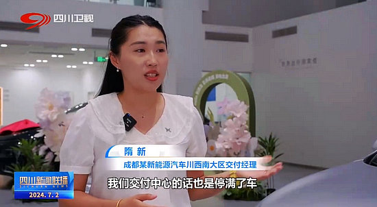 成都某新能源汽車川西南大區(qū)交付經(jīng)理 隋新:大概有個(gè)20%左右的這樣的一個(gè)增幅,我們交付中心的話也是停滿了車,然后這個(gè)只是今天上午的,下午還會(huì)再有一批車進(jìn)來,今天大概有個(gè)20多臺的一個(gè)交付量,也是本月的最高峰。