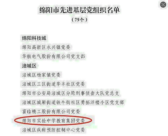 綿陽新聞網(wǎng)訊 近日,中共綿陽市委公開了綿陽市優(yōu)秀共產(chǎn)黨員、優(yōu)秀黨務(wù)工作者、先進(jìn)基層黨組織名單,綿陽市實(shí)驗(yàn)中學(xué)教育集團(tuán)黨委榮獲“綿陽市先進(jìn)基層黨組織”稱號。