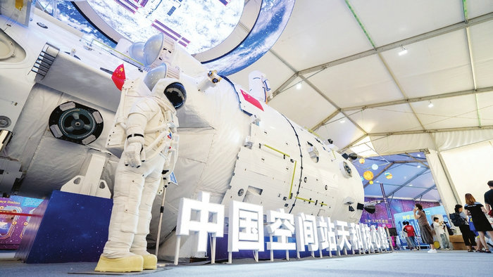 此外,展會(huì)還為航天迷們準(zhǔn)備了酷酷的“航天服”,親身感受航天員的日常生活和工作,可在太空艙、探月計(jì)劃、探火計(jì)劃等區(qū)域打卡拍照。“今天我穿了宇航員的衣服在太空艙里拍照留念,太開(kāi)心了,還學(xué)到了很多航天科技知識(shí),可謂收獲滿滿。”小學(xué)生夏于舒滿心歡喜地說(shuō)。