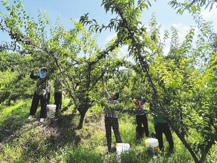 據(jù)介紹,鹽亭李子成功“出圈”,離不開當?shù)亓己玫纳L環(huán)境,脆紅李、蜂糖李是天然的“綠色”產品,自然不愁銷路。近年來,鹽亭縣牢固樹立“綠水青山就是金山銀山”的理念,采取“公司+合作社+農戶”經營模式,念好“山字經”,打好“綠色牌”,在巨龍、金孔、玉龍、高渠、嫘祖等鄉(xiāng)鎮(zhèn)發(fā)展早、中、晚熟李萬余畝,實現(xiàn)產值近2億元。