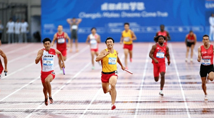 2023年8月,在第31屆世界大學生夏季運動會田徑項目男子4×100米接力決賽中,鄧智艦為中國隊跑最后一棒,最終逆襲奪得金牌,被譽為“飛人”。運動會后,鄧智艦回到母??赐蠋熀徒叹?,用自己的成長經歷和學弟學妹們一起分享交流,鼓勵大家堅持刻苦訓練,不斷努力“向前沖”!