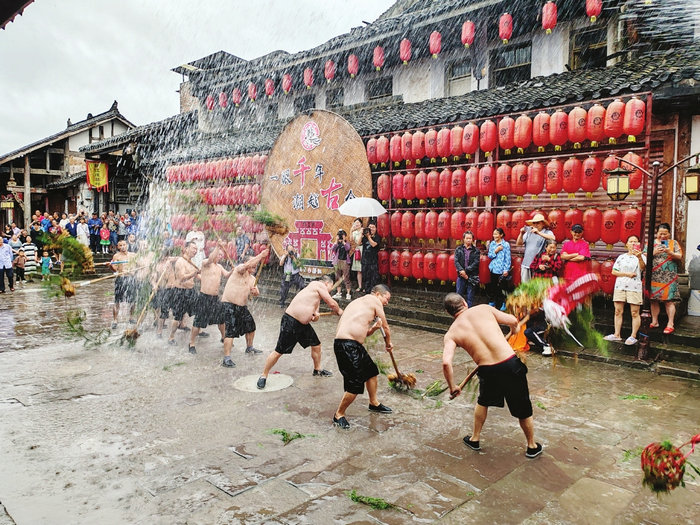 郪王社區(qū)黨總支書記楊平介紹,每逢重大節(jié)日,郪江古鎮(zhèn)張燈結(jié)彩,采蓮船、舞火龍、郪王巡城等演出隊抓緊排練,隨時準備迎接遠道而來的客人。