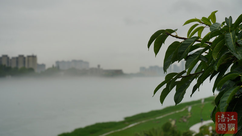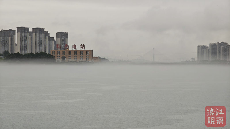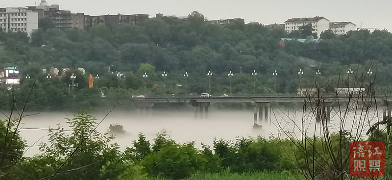 7月8日傍晚時分,雨水暫歇,在綿陽涪江河面上,霧靄繚繞,兩岸的高樓、橋梁在飄渺的氤氳里若隱若現(xiàn),就像浮在空中一般,宛如仙境。