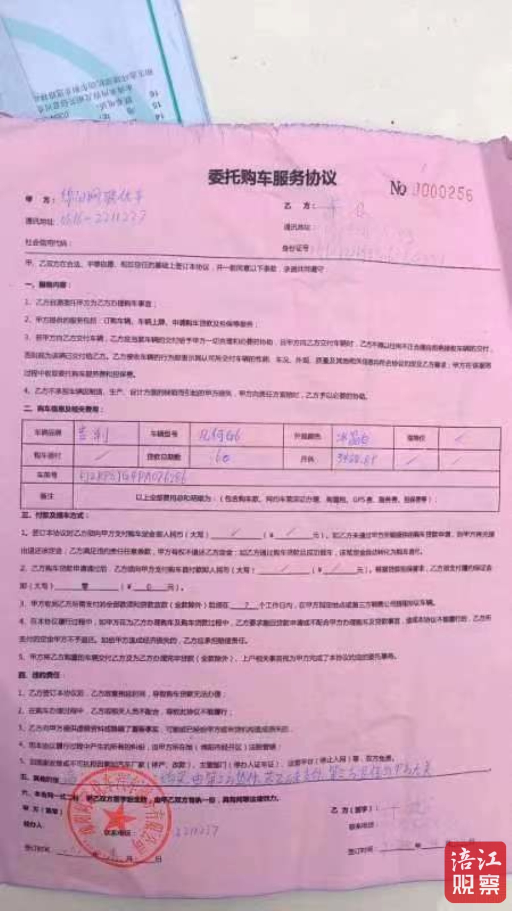 “要跑線路,必須要有新能源車。你沒有,公司可以幫你0首付買一輛。”很快,招聘人員就將一份車輛委托代購服務協(xié)議遞到了向潞面前,經(jīng)向潞簽字,委托公司訂購了該款車。