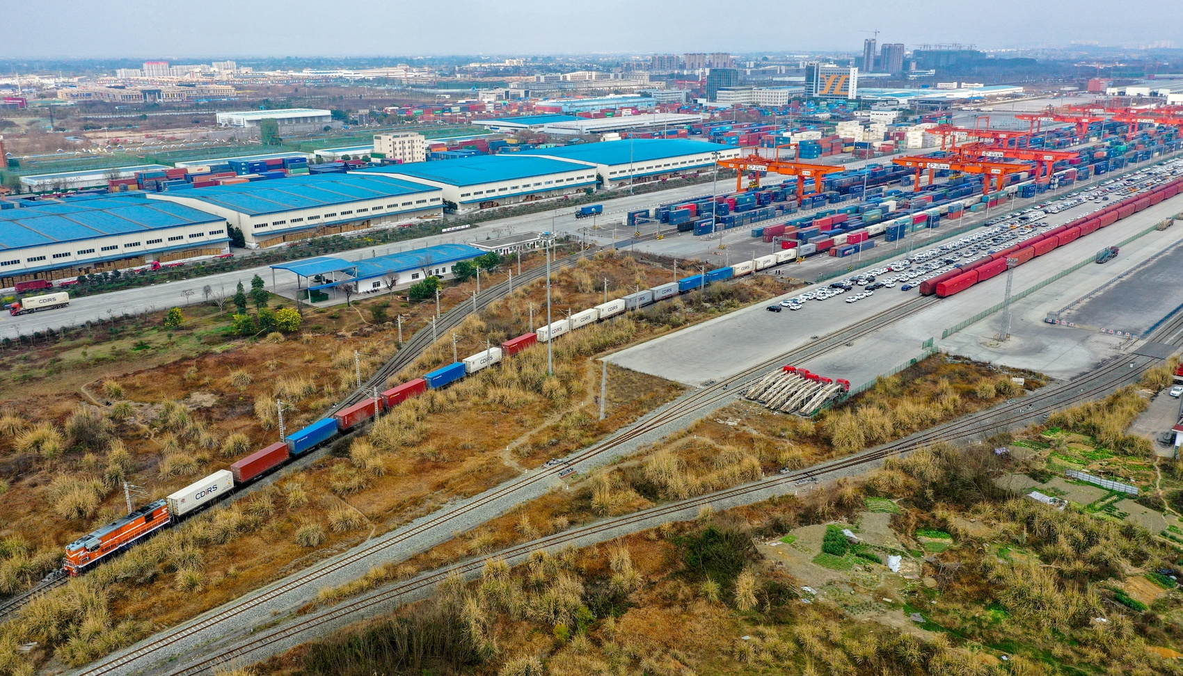 在成都國際鐵路港,每天都有數(shù)班國際班列發(fā)往全球。成都國際鐵路港供圖