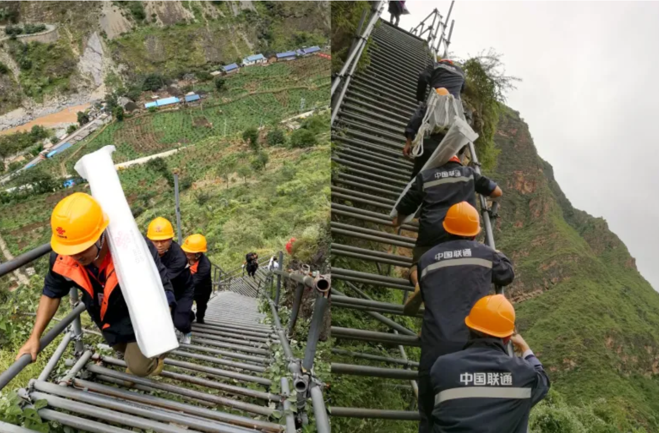 涼山州“懸崖村”天梯上的聯(lián)通人