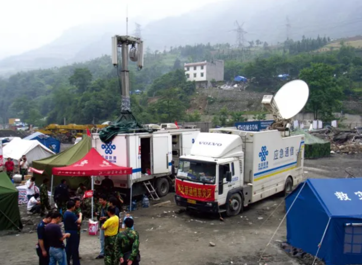 2008年5·12汶川地震后,聯(lián)通應(yīng)急通信車趕赴災(zāi)區(qū)
