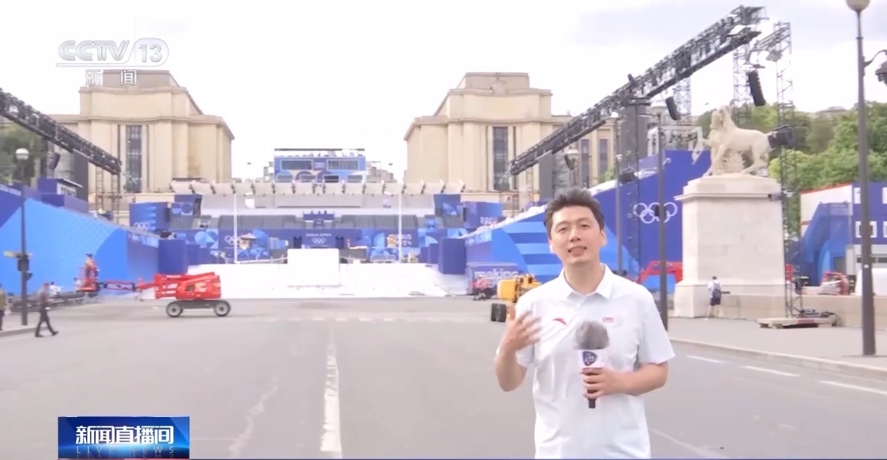 總臺(tái)央視記者 鄭怡哲:當(dāng)我們看到埃菲爾鐵塔上的奧運(yùn)五環(huán)標(biāo)志的時(shí)候,就基本上抵達(dá)了運(yùn)動(dòng)員入場(chǎng)的終點(diǎn)。埃菲爾鐵塔下面的戰(zhàn)神廣場(chǎng)本身也是一座比賽場(chǎng)館,它是臨時(shí)搭建的沙灘排球的比賽用地。開幕式當(dāng)天,運(yùn)動(dòng)員、教練員和代表團(tuán)官員們乘船抵達(dá)附近水域后,會(huì)從埃菲爾鐵塔一側(cè),穿過(guò)耶拿橋,來(lái)到對(duì)面的特羅卡德羅廣場(chǎng),相關(guān)的開幕儀式環(huán)節(jié)很多都將在這里舉行。目前現(xiàn)場(chǎng)的搭建裝修還在收尾階段,讓我們共同拭目以待。