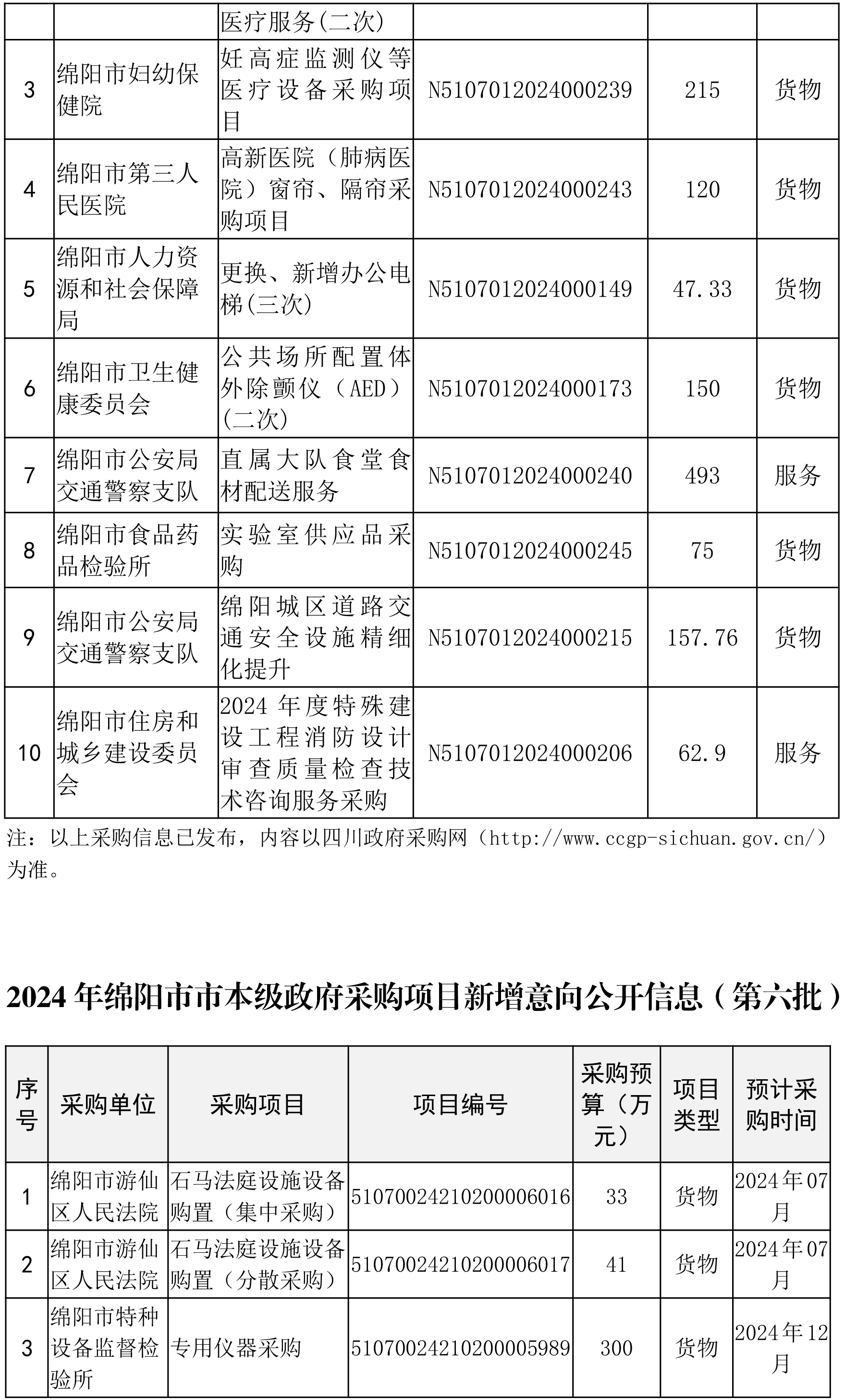 85個(gè)政府采購項(xiàng)目的“機(jī)會(huì)清單” 出爐!(2024年第六波)綿陽市市本級(jí)政府采購項(xiàng)目信息動(dòng)態(tài)(2024年第六批)