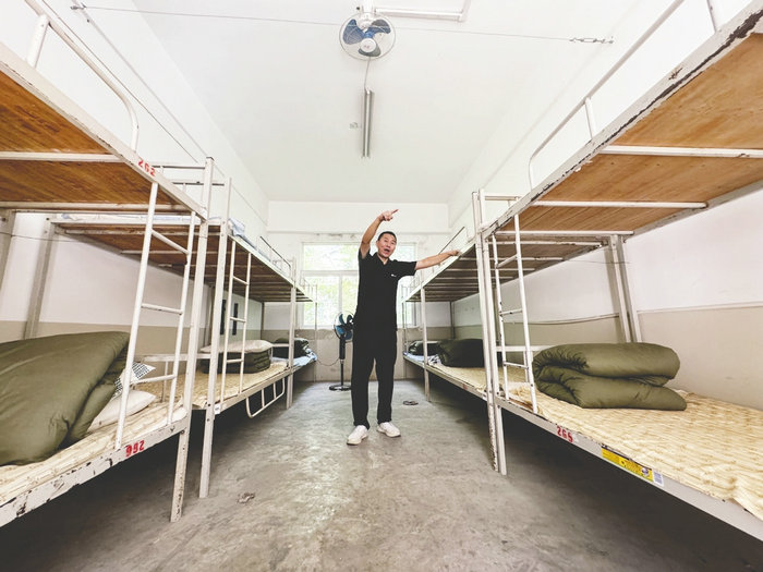 陳家壩中學(xué)安置點(diǎn),龍灣村村民母志明正在操場上幫安置點(diǎn)群眾曬被子。一周前,他收到橙色預(yù)警短信沒多久,村干部便派車把他和鄰居們接了過來。他領(lǐng)著記者參觀臨時(shí)家園。一樓門口是用餐區(qū),三個(gè)村最高峰轉(zhuǎn)來70余人,當(dāng)?shù)卣峁┟酌嬗腿猓齻€(gè)村輪流派出廚師烹飪。角落里擺放著5臺(tái)動(dòng)感單車供群眾健身。二樓住宿男女分區(qū),配備了電扇、蚊香、消防設(shè)施等。安置點(diǎn)還配有電腦,通過攝像頭可實(shí)時(shí)查看村里隱患點(diǎn)的最新情況。7月26日,隨著地災(zāi)風(fēng)險(xiǎn)預(yù)警解除,陳家壩中學(xué)安置點(diǎn)的村民也陸續(xù)返回了家園。