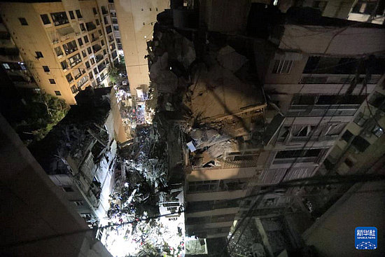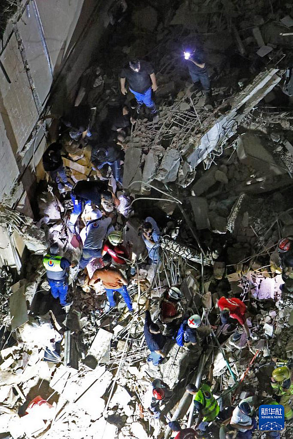 7月30日,在黎巴嫩貝魯特南郊,救援人員在以軍襲擊毀壞的建筑廢墟上搜尋幸存者。新華社發(fā)(比拉爾·賈維希攝)