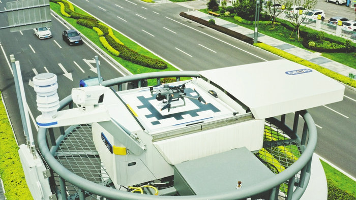 為什么要將“機(jī)場”建在路燈桿上?據(jù)四川新投智城科技有限公司研發(fā)設(shè)計(jì)經(jīng)理劉家文介紹,這既是為了提高無人機(jī)的執(zhí)飛效率,也是利用現(xiàn)有基礎(chǔ)設(shè)施,節(jié)省城市空間,實(shí)現(xiàn)低空“執(zhí)勤”。這便是“天空地”一體化系統(tǒng)中“空”的重要組成部分,它負(fù)責(zé)承擔(dān)起銜接“天”與“地”間交辦的任務(wù)。