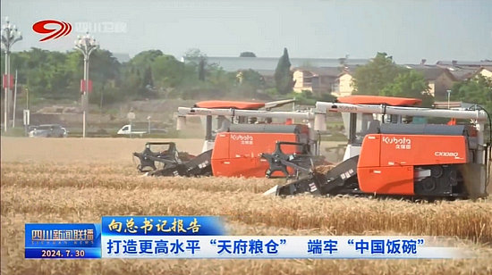微風(fēng)拂青苗,良田育稻秧。機(jī)械全上陣,顆粒齊歸倉(cāng)。如今的蜀鄉(xiāng)沃野,糧豐農(nóng)穩(wěn),五谷豐登。站在新的歷史起點(diǎn)上,四川將不負(fù)使命,勇?lián)赝?,推?dòng)“天府糧倉(cāng)”朝著更高水平邁進(jìn),為端牢“中國(guó)飯碗”提供堅(jiān)實(shí)保障。
