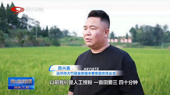 達(dá)州市大竹縣童家鎮(zhèn)豐泰家庭農(nóng)場(chǎng)業(yè)主 周興鑫:以前我們是人工授粉,一畝田要三、四十分鐘,現(xiàn)在無(wú)人機(jī)授粉了,一畝田只要幾分鐘。