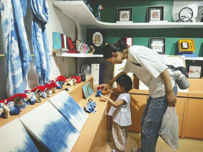 展臺內(nèi)的各種文創(chuàng)產(chǎn)品讓人應(yīng)接不暇,剪紙、蜀繡、董氏扎染等非遺產(chǎn)品,種類多達(dá)幾十種。