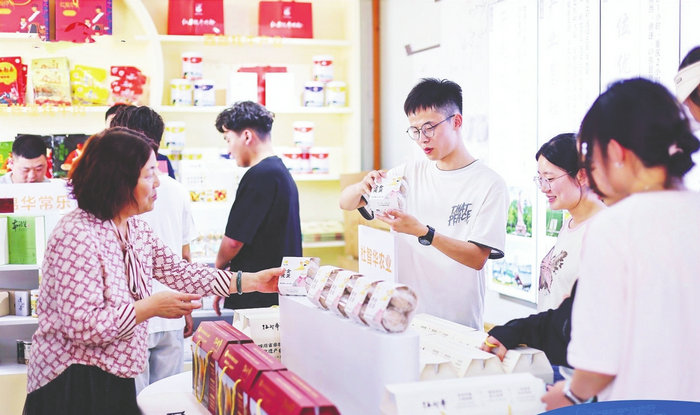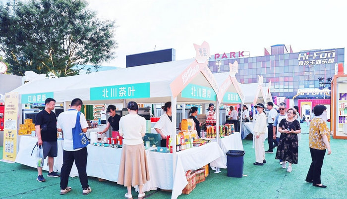 在區(qū)域特色集裝箱區(qū),三臺、鹽亭、平武、梓潼、游仙、安州充分融入地域特色,展示各地產(chǎn)業(yè)、文化發(fā)展情況,還有老字號、地標(biāo)等特色農(nóng)業(yè)和文創(chuàng)產(chǎn)品。