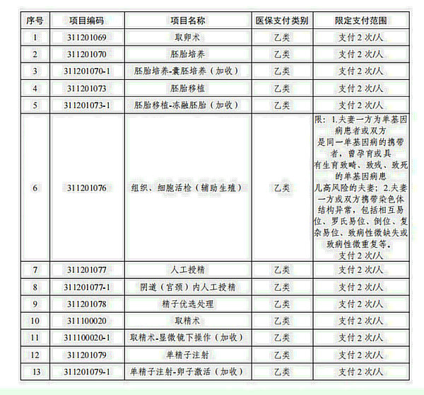 擬納入基金支付范圍的治療性輔助生殖類醫(yī)療服務(wù)項(xiàng)目。四川省醫(yī)保局供圖