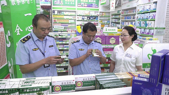 此次檢查以藿香正氣液、復(fù)方板藍(lán)根顆粒等常見防暑降溫藥品為重點(diǎn)品種,執(zhí)法人員重點(diǎn)對藥品經(jīng)營店的空調(diào)、冷藏箱等設(shè)施設(shè)備是否正常運(yùn)轉(zhuǎn)、設(shè)備運(yùn)行記錄是否齊全、藥品是否按規(guī)定儲存條件存放、藥品進(jìn)貨渠道、票據(jù)管理及有效期等內(nèi)容進(jìn)行檢查(如圖)。