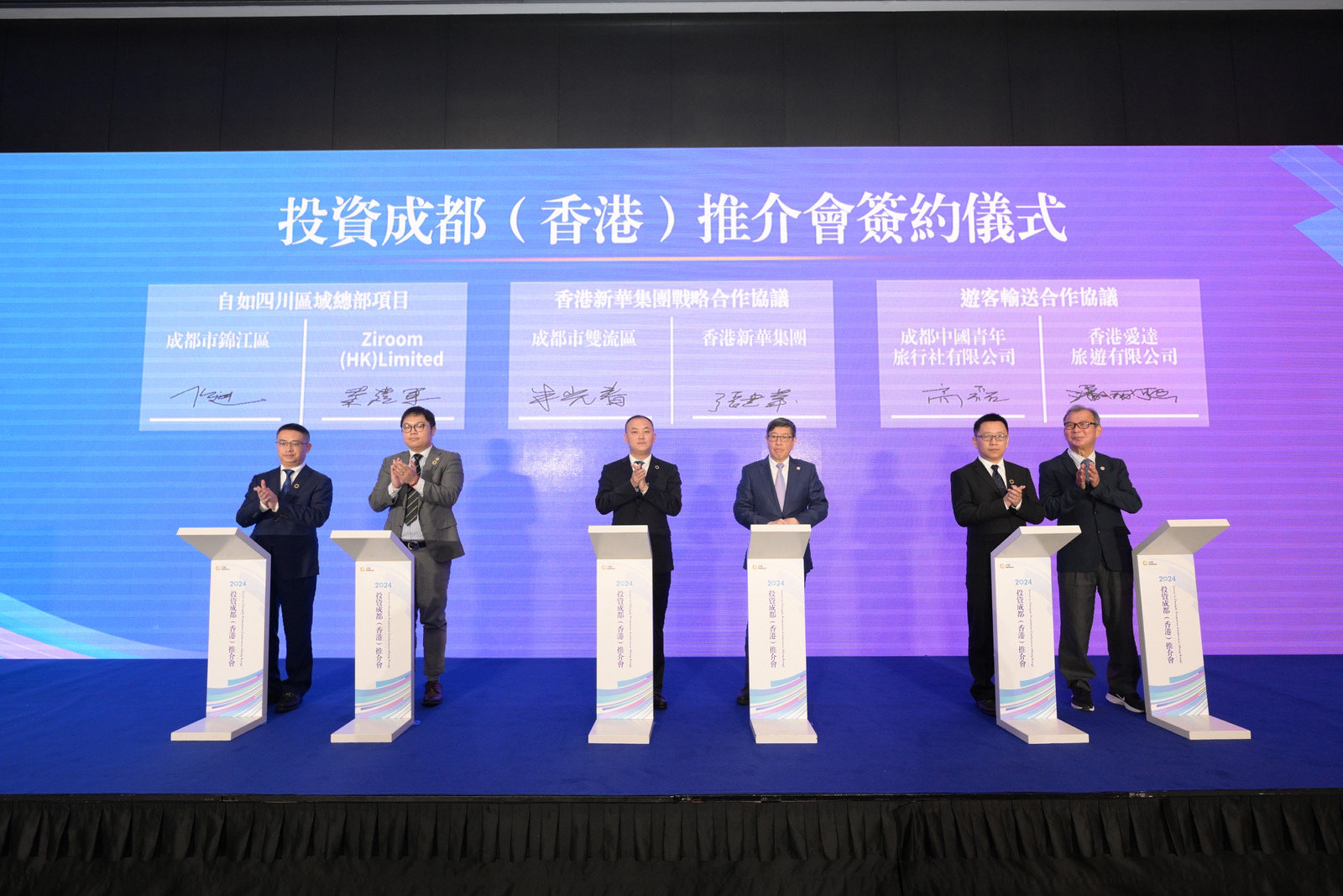 隨著蓉港高鐵的開行,兩地間的往來更加頻繁。去年10月31日,2023成都—香港投資合作推介會在香港舉辦,現(xiàn)場簽約3個重要蓉港合作項目,總投資額168億元。此外,成都先后派出多個招商小分隊赴香港,分享成都經(jīng)濟活力、獨特魅力和投資潛力,吸引香港企業(yè)來蓉投資發(fā)展。