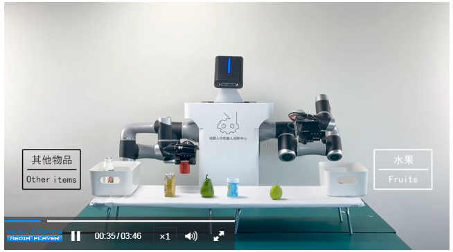 語義指令,涉及將對象進(jìn)行相對明確和相對抽象地區(qū)分和分揀,完成這些任務(wù)則需要機(jī)器人通過多模態(tài)模型自主對所有物品進(jìn)行提取歸納。“比如,在對瓶子形狀的物體進(jìn)行可食用和不可食用區(qū)分、分揀時(shí),需要通過進(jìn)一步對瓶身包裝上的文字、圖片等要素進(jìn)行綜合判斷,才能區(qū)分其為可食用還是非食用瓶裝物。”成都人形機(jī)器人創(chuàng)新中心相關(guān)負(fù)責(zé)人說。