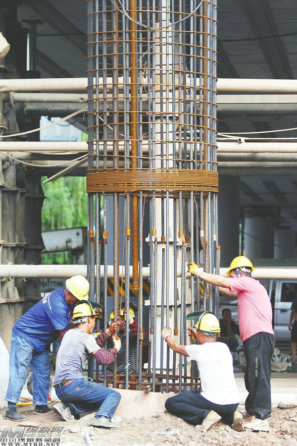 8月14日上午9時(shí)許,地面溫度已達(dá)31℃,在位于游仙區(qū)魏城鎮(zhèn)的G5京昆高速綿廣擴(kuò)容LJ13合同段項(xiàng)目現(xiàn)場,工人們頭戴安全帽,三兩成組進(jìn)行鋼筋作業(yè),或綁或焊,豆大的汗珠不停從臉頰兩側(cè)滑落。