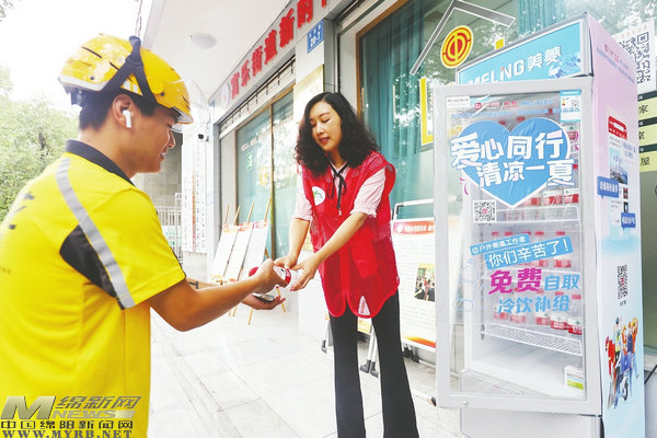 記者了解到,目前投運(yùn)的5臺“涪寶愛心冰柜”經(jīng)過嚴(yán)格選址,均設(shè)置在人流密集的街頭,向環(huán)衛(wèi)工人、建筑工人、快遞員、外賣小哥、一線干警等戶外工作者提供免費(fèi)的冷飲。