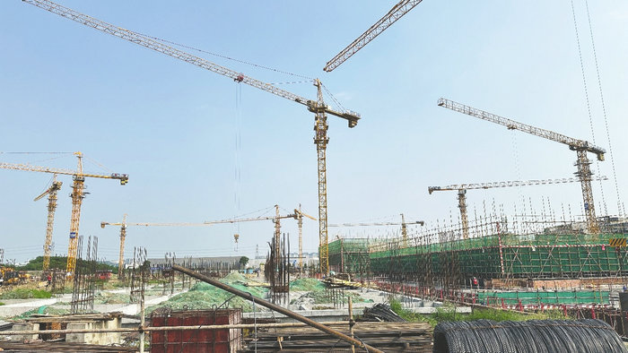 八月驕陽(yáng)似火,施工現(xiàn)場(chǎng)也是一片火熱的景象。記者在現(xiàn)場(chǎng)了解到,該項(xiàng)目一共有6棟樓,每天400余名工人、11臺(tái)塔吊裝置同時(shí)運(yùn)轉(zhuǎn)。“目前1、2、3號(hào)樓正在進(jìn)行主體的鋼筋混凝土模板施工,4號(hào)樓進(jìn)行高壓旋門樁施工,5號(hào)樓進(jìn)行承臺(tái)施工,6號(hào)樓進(jìn)行結(jié)構(gòu)底板施工。”蔣方林介紹,正值高溫季節(jié),為了確保工人健康安全和項(xiàng)目進(jìn)度,工作時(shí)間已調(diào)整為上午6點(diǎn)至11點(diǎn)、下午3點(diǎn)至8點(diǎn),同時(shí)還為工人們送上防暑降溫物資。