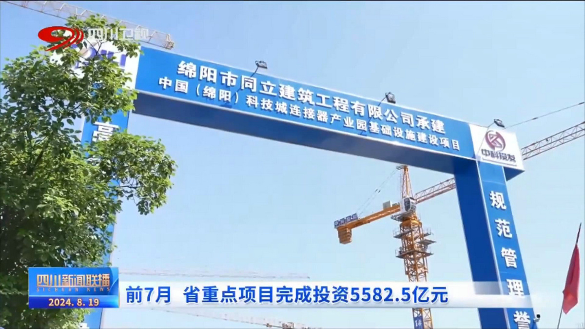 今天(8月19日),《四川新聞聯(lián)播》專題報道了前7月全省重點項目投資完成情況,并將鏡頭對準綿陽,關注了綿陽有關情況。