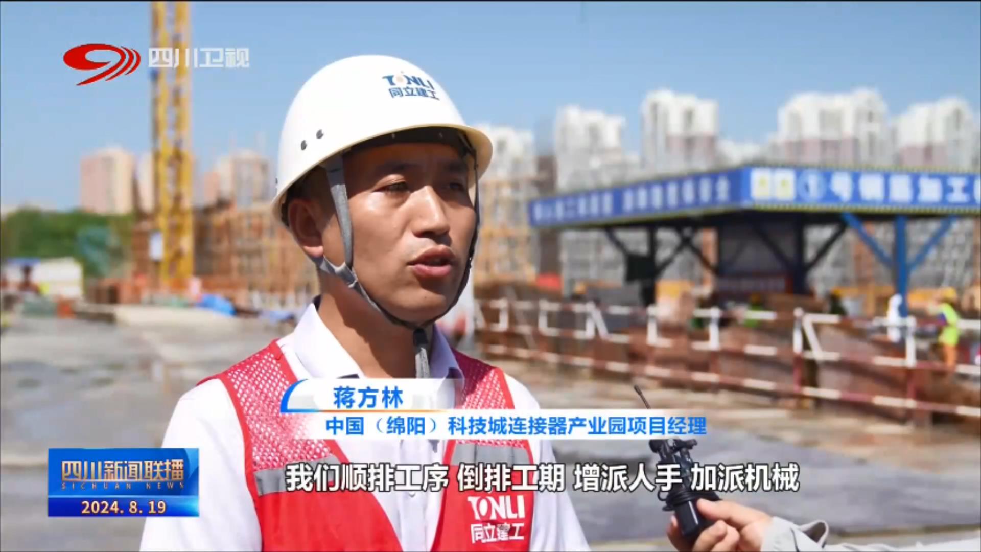 中國(綿陽)科技城連接器產(chǎn)業(yè)園項目經(jīng)理 蔣方林:我們順排工序、倒排工期、增派人手、加派機械,同時合理調(diào)整作業(yè)時間,避開高溫天氣,全過程動態(tài)管理各類生產(chǎn)要素,力爭在今年年底,實現(xiàn)主體結(jié)構(gòu)封頂,2025年年底全面竣工。