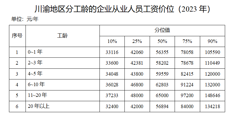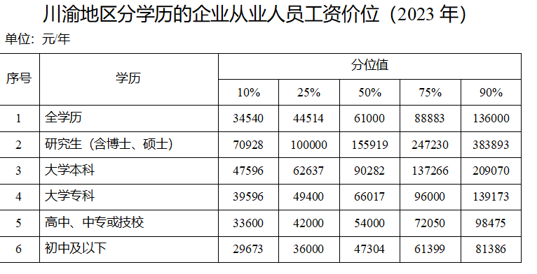 川渝地區(qū)2023年企業(yè)人均人工成本中位數(shù)為77500元/年。