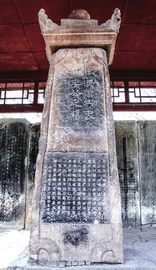漢平陽府君闕主闕上,支出的檐枋柱頭上原有“漢平陽府君叔神道”銘文,現(xiàn)僅存“漢”“平”等字。副闕形同主闕,尺寸略小。主闕闕身刻有車馬出行圖、追獵圖、舞樂圖等浮雕。在闕身中部,有南北朝時(shí)期佛教和道教造像60龕(組)和題記6則,其中有梁大通三年(公元529年)紀(jì)年,是十分罕見的南北朝時(shí)期的石刻造像。