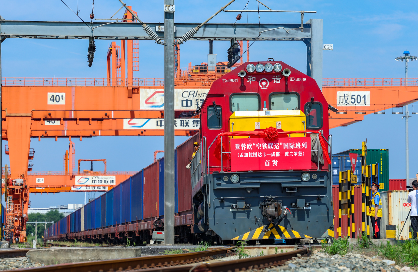 亞蓉歐“空鐵聯(lián)運(yùn)”國(guó)際班列首發(fā)。成都國(guó)際鐵路港供圖