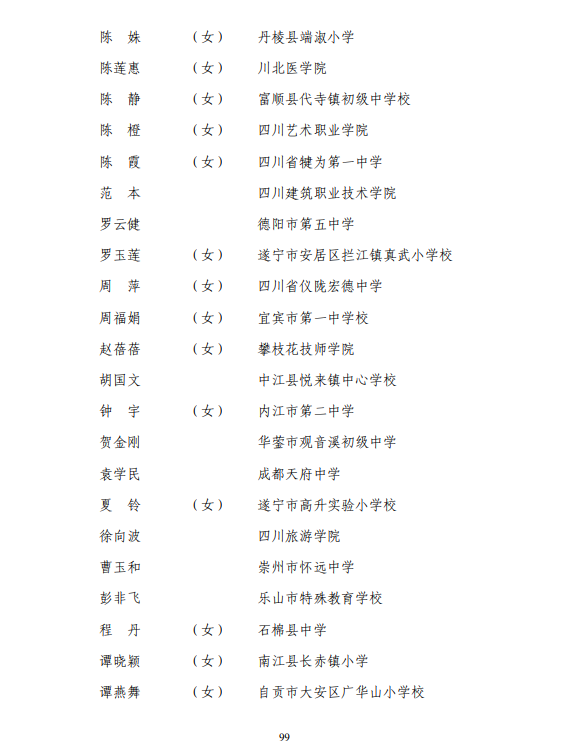 全國優(yōu)秀教育工作者擬表彰對象名單