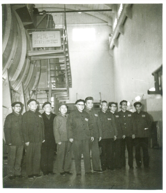 鄧稼先(右五)、王淦昌(右六)、程開甲(右七)與劉盛綱院士(右三)合影。