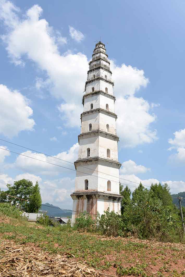 胡華庭是步月塔的籌建者。相傳,清雍正年間,漁溪寺場剛建不久,有一修煉千年的妖怪興風作浪,禍害百姓。后經(jīng)一道士指點,胡華庭遂組織鄉(xiāng)人捐資在漁溪寺場南修建文峰塔——步月塔,以鎮(zhèn)住烏龜精,并將建塔的山包命名“烏龜包”。塔以“步月”命名,寓意上可登云步月,下可鎮(zhèn)妖避難。自此,“文塔凌云”成為“漁溪八景”之一。
