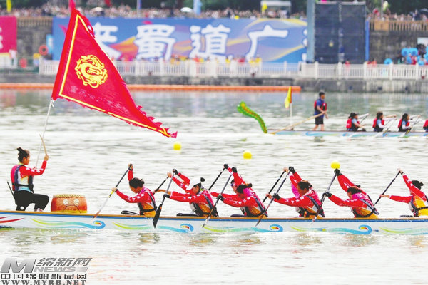 開幕式現(xiàn)場,精彩的鳳舟巡游展示拉開了2024年廣元女兒節(jié)國際鳳舟賽的序幕。廣元市組建了12支大眾隊伍,與國內(nèi)外12支鳳舟隊伍在嘉陵江同場競技,劃手們隨著整齊的鼓點奮力劃槳,在風(fēng)聲與浪花中奮勇爭先,為群眾奉上一場精彩的水上運動盛宴。