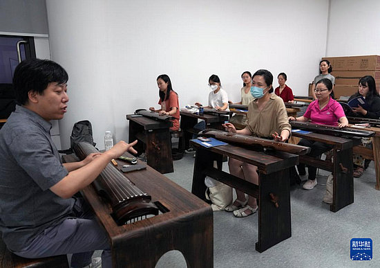 9月2日晚,在上海市群眾藝術(shù)館,夜校學(xué)員在古琴班上課。