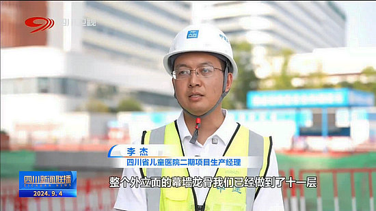 四川省兒童醫(yī)院二期項目生產(chǎn)經(jīng)理 李杰:目前的一個進展是,整個二次結(jié)構(gòu)已經(jīng)做到了十層,整個外立面幕墻龍骨我們已經(jīng)做到了十一層,我計劃的是本年度實現(xiàn)整個外立面整體效果的呈現(xiàn)。
