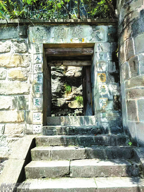 進(jìn)入尋樂書巖大門,可以看見一副對聯(lián):“讀圣賢書行仁義事,盡人物性立天地心”,橫批“天然樂趣”。字跡雖有些風(fēng)化,但還比較清晰。這副對聯(lián)化用了朱熹的兩副對聯(lián)“立修齊志,讀圣賢書”和“行仁義事,存忠孝心”,體現(xiàn)出中國傳統(tǒng)儒家思想文化的印跡。