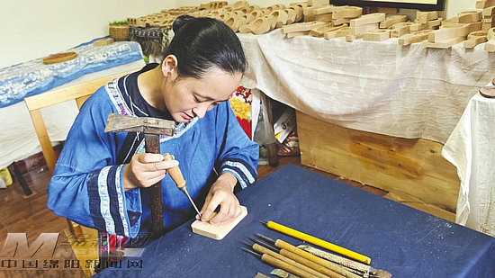 緊接著,楊春艷向記者展示了月餅?zāi)V谱骷妓囎罹A的地方——雕花。隨著手起刀動,月餅?zāi)2劾锏幕y變得越來越精致。