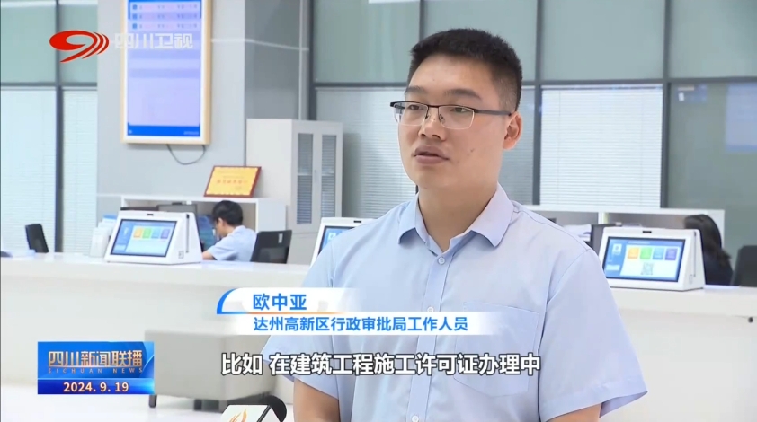 達(dá)州高新區(qū)行政審批局工作人員 歐中亞:比如,在建筑工程施工許可證辦理中,我們將質(zhì)量監(jiān)督備案、安全監(jiān)督備案等事項與施工許可并聯(lián)審批,一次辦結(jié)。整個過程由法定的20個工作日,縮短為一個工作日。