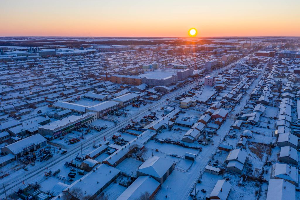 這是2019年12月18日拍攝的黑龍江省撫遠(yuǎn)市寒蔥溝鎮(zhèn)紅旗村一角(無人機(jī)照片)。新華社發(fā)(謝劍飛攝)