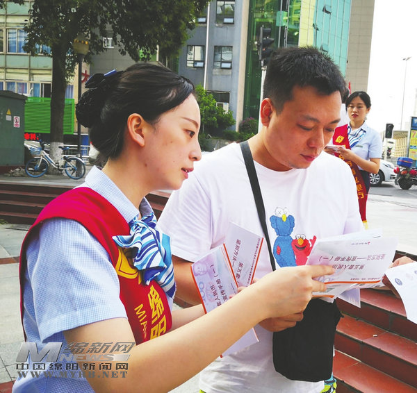 綿陽市商業(yè)銀行職員向市民講解新版人民幣防偽知識