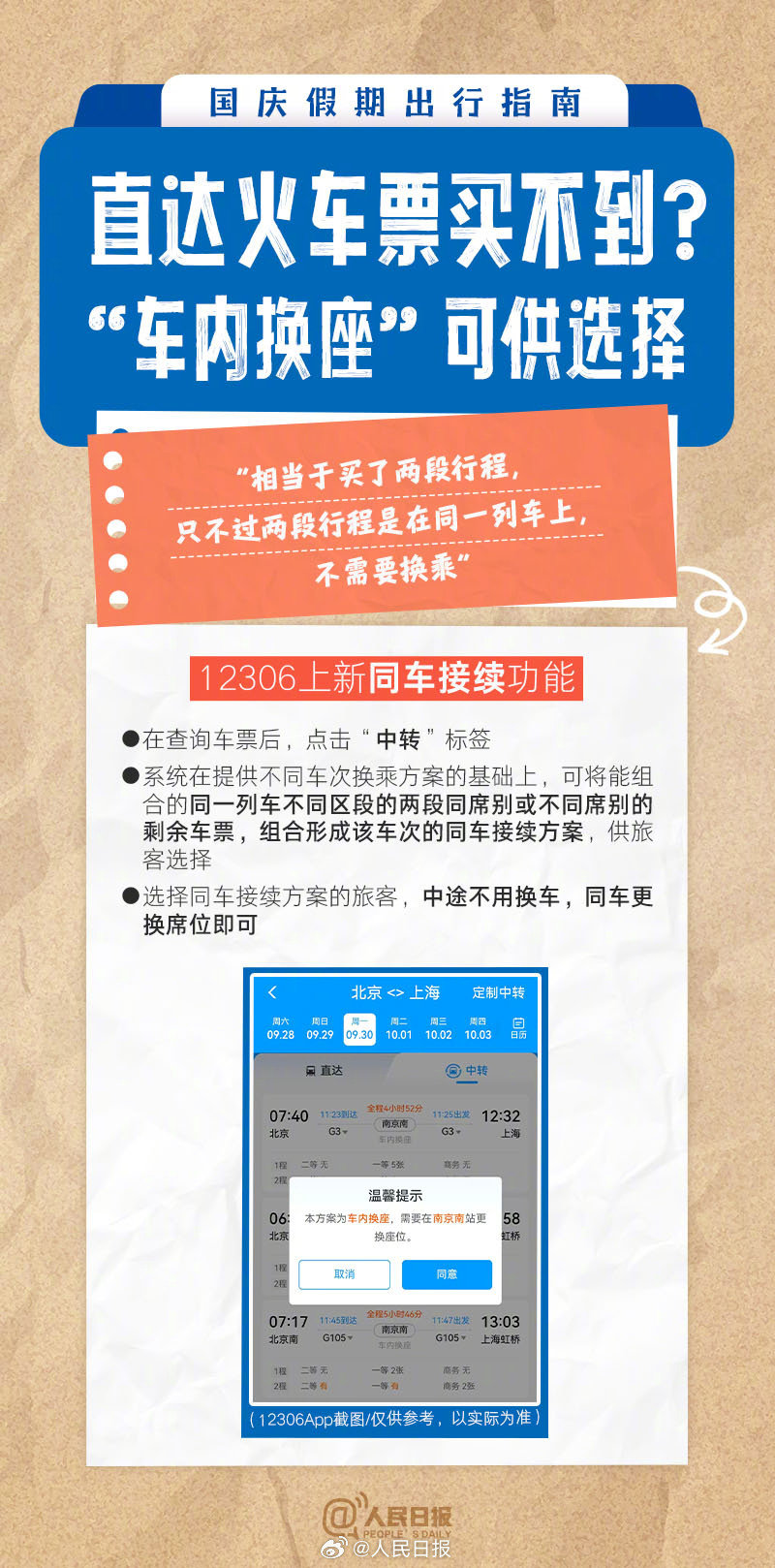 摘要:國慶假期將至,你有出行計劃嗎?哪些東西不能帶上火車飛機(jī)?坐火車坐飛機(jī)忘帶身份證怎么辦?開車后改簽車票、“車內(nèi)換座”,坐火車出行有哪些新變化?