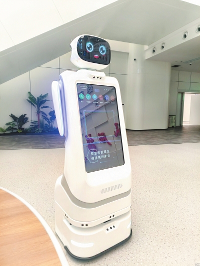 走進新政務服務中心大廳,迎面而來的除了面帶微笑的前臺工作人員,還有熱情的“導服”機器人。