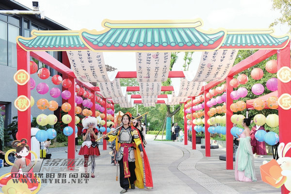 中秋假期,仙海萬創(chuàng)集舉辦的“月滿仙海·夢回西游”國風(fēng)主題游園會人頭攢動、游人如織。游客在NPC(游戲角色)帶領(lǐng)下手持通關(guān)文牒,跟著“西游取經(jīng)”團隊一起闖關(guān),“九九八十一難”通關(guān)之后,領(lǐng)取精美獎品,收到“嫦娥仙子”派發(fā)的中秋大禮包?;顒硬粌H有漢服、游園等“新中式”體驗,還有好玩又有趣的“中秋集市”。集市上,“火焰山”燒烤、西游零食鋪……每道菜品均配有故事卡片,勾勒出對西游故事的回憶,大朋友小朋友們一邊觀賞精彩的文藝節(jié)目,一邊積極與主持人互動,回答問題贏得獎品,熱鬧至極。