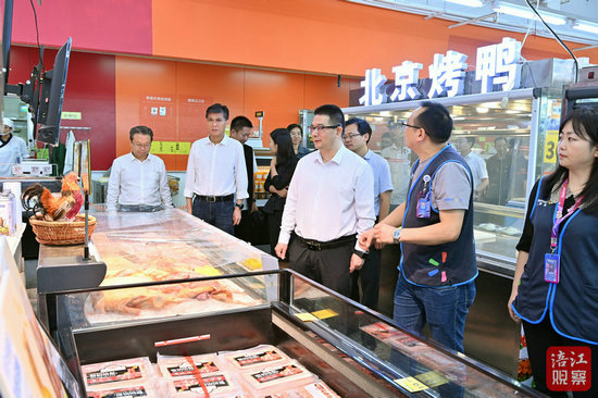 “菜籃子”供應(yīng)保障事關(guān)千家萬(wàn)戶。沃爾瑪超市公園店各種商品琳瑯滿目。李云邊走邊詳細(xì)詢問商品價(jià)格、物資供應(yīng)、食品安全等情況,檢查超市消防設(shè)施器材配備、安全通道設(shè)置,并現(xiàn)場(chǎng)抽查工作人員操作滅火器的熟練程度。他強(qiáng)調(diào),要進(jìn)一步暢通供應(yīng)渠道,豐富商品種類,保持價(jià)格穩(wěn)定,嚴(yán)把食品質(zhì)量安全關(guān)口,常態(tài)化開展消防滅火技能和逃生疏散演練,讓廣大群眾“安心吃”“放心購(gòu)”;要更大力度開展系列消費(fèi)促進(jìn)活動(dòng),不斷豐富消費(fèi)業(yè)態(tài)、提高商圈品質(zhì),更好滿足群眾多元消費(fèi)需求。
