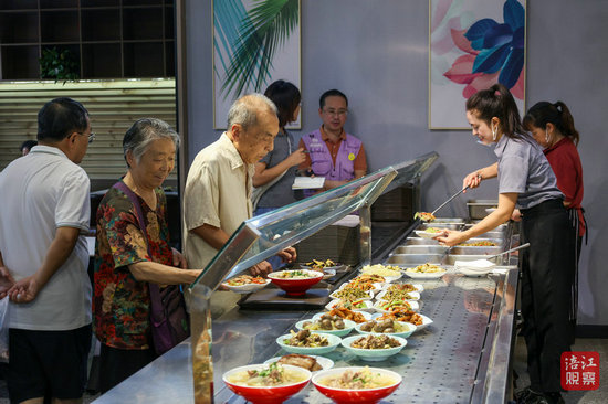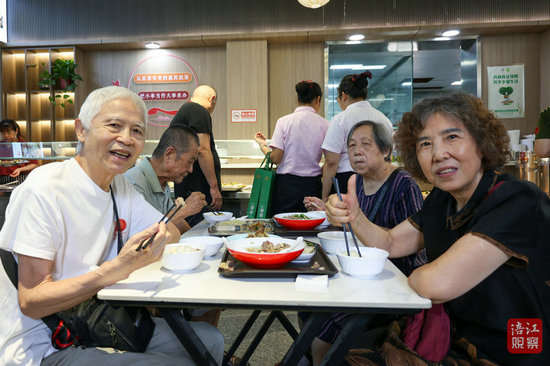 清炒菠菜、麻婆豆腐、酸菜鴨血、青筍肉片……不久前,記者在南河路幸福餐廳看到,老人們?nèi)宄扇?,面?duì)10余種葷素搭配的家常菜品仔細(xì)挑選。“現(xiàn)在不僅菜品豐富了,價(jià)格還合理。”78歲的王婆婆和老伴兒對(duì)幸福餐廳贊不絕口。