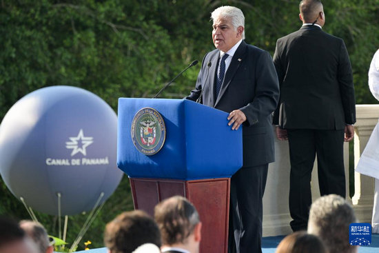 12月31日,巴拿馬總統(tǒng)穆利諾在首都巴拿馬城舉行的正式收回巴拿馬運河主權25周年紀念活動上發(fā)表講話。新華社記者 陳昊佺 攝